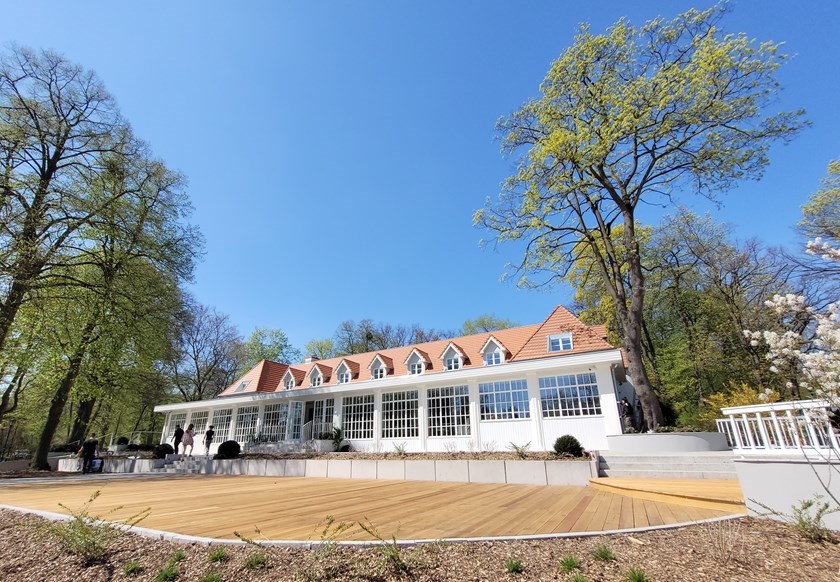 − The local style was the inspiration. The design refers to the original character of the building, which, together with a colony of luxurious villas by J. Stubben, fit into the natural Bogdanka valley to this day. External changes are conservative. The bright wooden conservatory is to create an atmosphere reminiscent of the old park atmosphere, conducive to relaxation. For this purpose, we have also designed extensive terraces immersed in greenery overlooking the Sołackie ponds. We have enlarged the windows of the wooden orangery part, which open onto the terrace. They now reach the floor and refer to the original appearance, they feature strongly emphasised muntins restoring the plasticity of the façade − says architect Ewelina Jankowska, from the EV Architects studio, responsible for the entire modernisation project of the building and interiors throughout the facility.